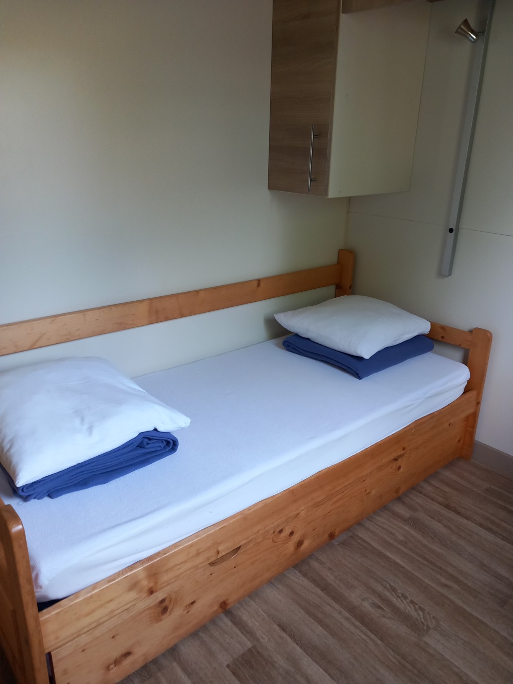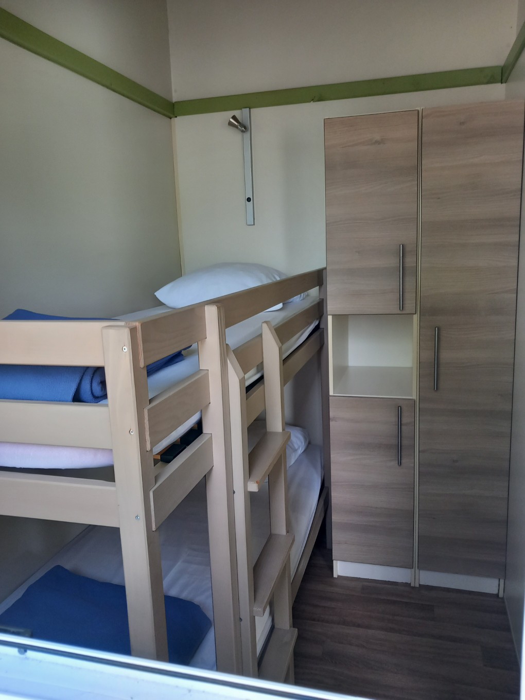 1 Schlafzimmer mit einem Einzelbetten (80×190) + einem Etagenbett (80x190)